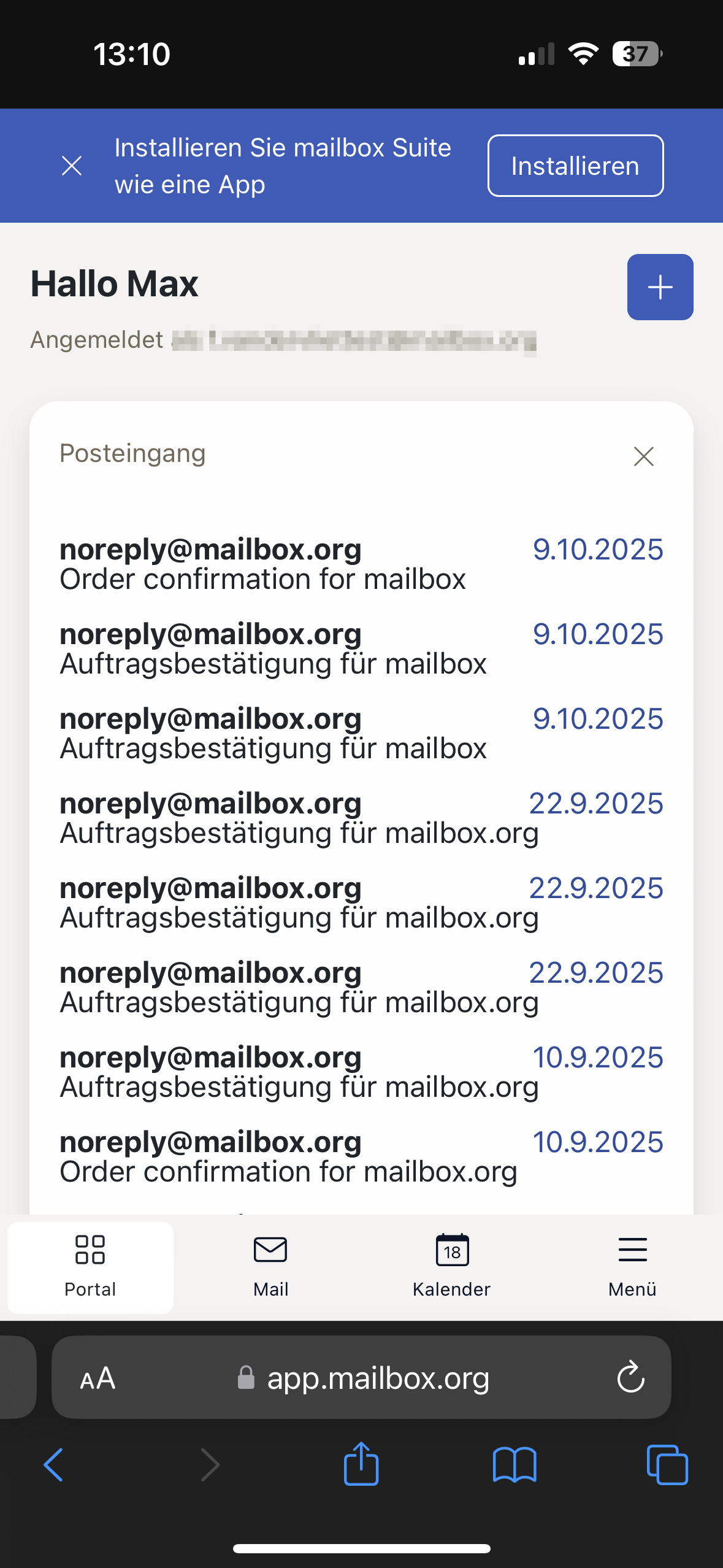 mailbox öffnet sich direkt als PWA im Vollbildmodus, ohne Browser-Adressleiste.