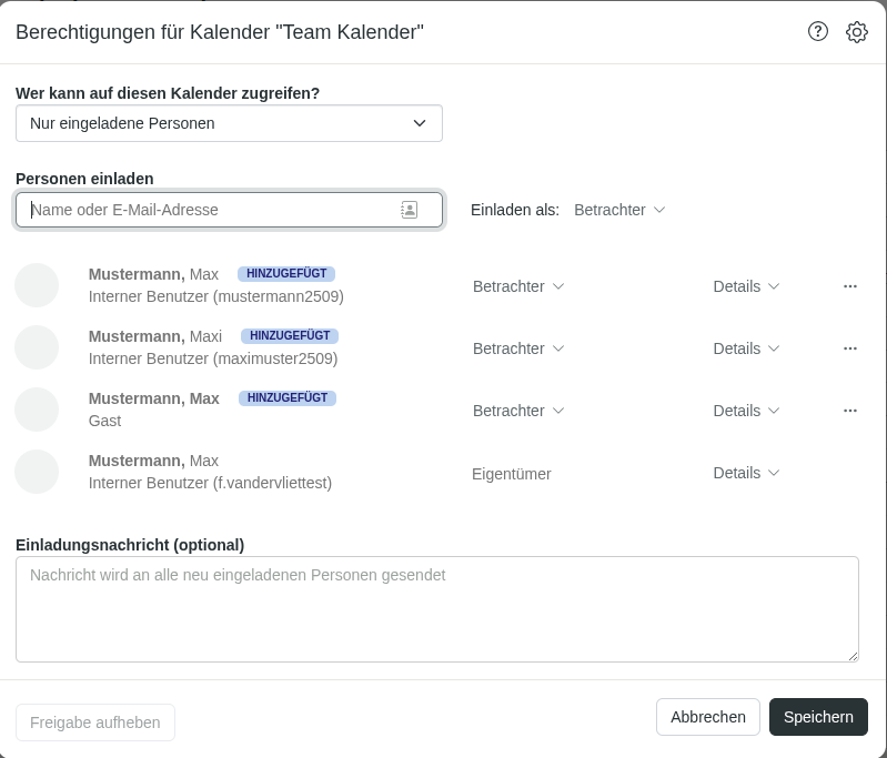 Abbildung 3: Teilen Sie den neu angelegten Kalender mit allen Familien Mitgliedern.
