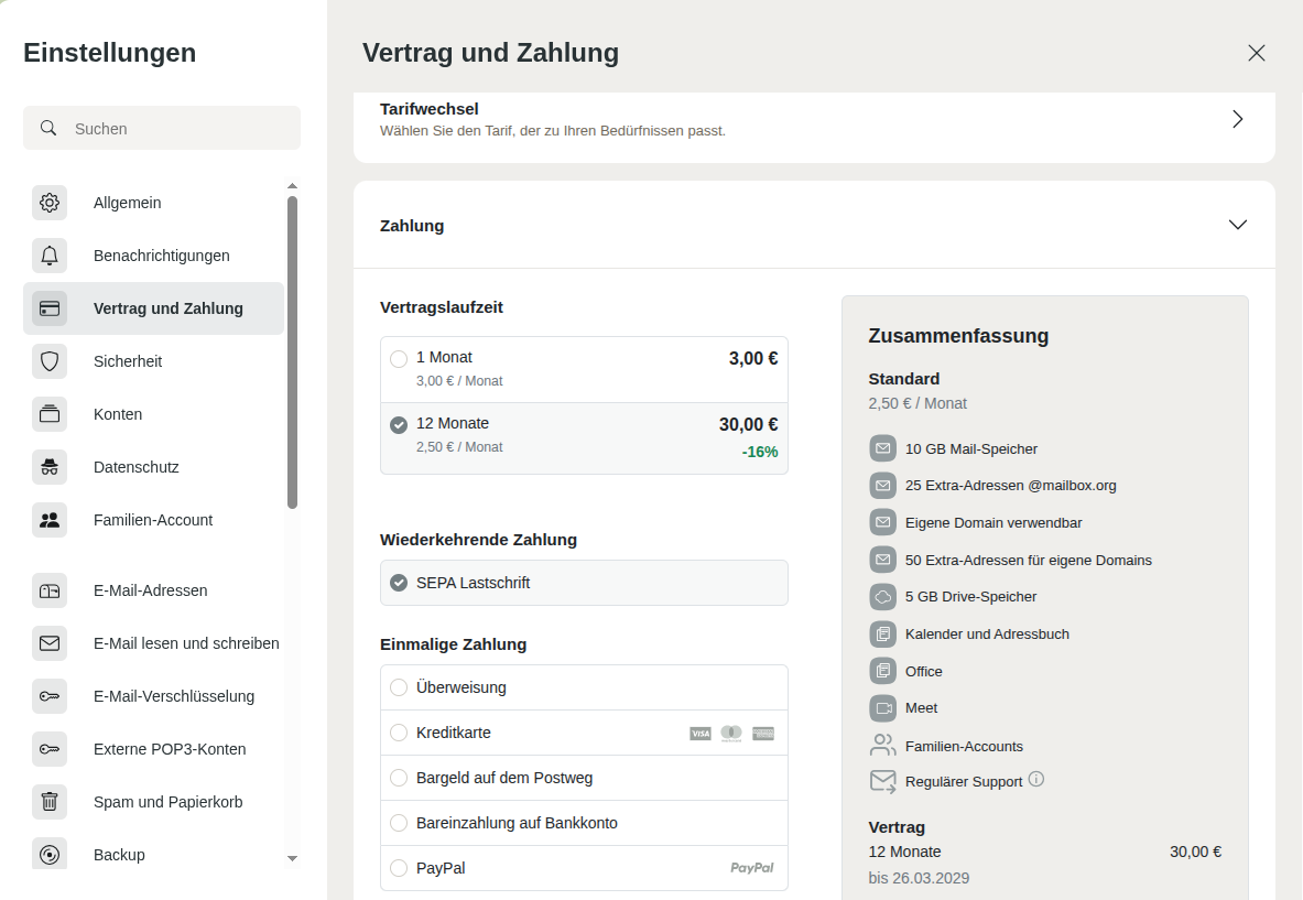 Bitte stellen Sie sicher, dass Ihr Bankkonto Lastschriftzahlungen unterstützt und dass alle erforderlichen Angaben korrekt hinterlegt sind. Sollten Fragen oder Unklarheiten auftreten, wenden Sie sich bitte direkt an den Helpdesk von mailbox.