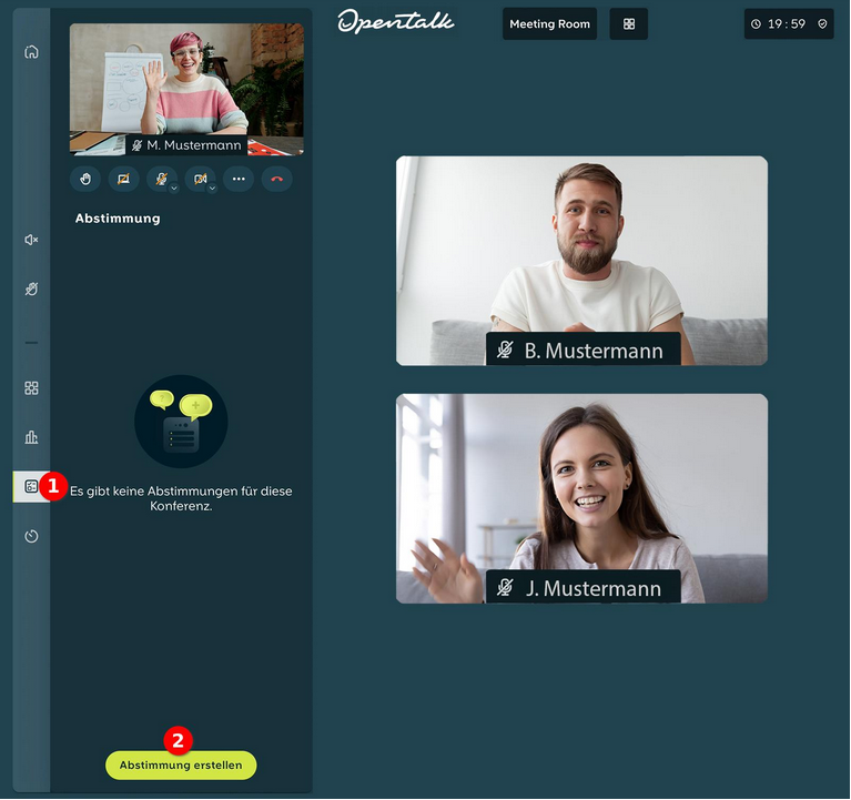 Um eine Abstimmung zu erstellen und zu starten, wählen Sie im linken Menü den Punkt Abstimmung (1) und klicken dann auf den Button Abstimmung erstellen (2) (Abbildung 1).