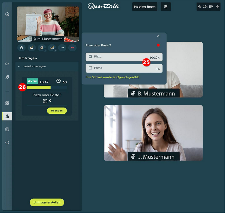 Bei mailbox Meet haben Sie die Möglichkeit, sowohl Abstimmungen als auch einfache Umfragen durchzuführen.