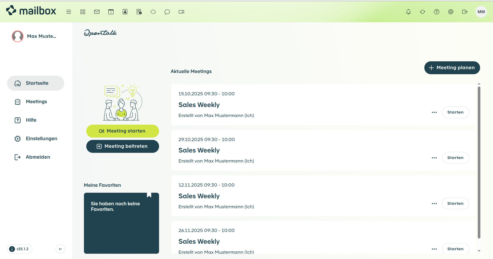 Mehr Informationen zu den einzelnen Funktionen finden Sie im Artikel Der mailbox Meet-Videoraum.