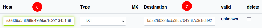 At the provider Hetzner, you need to enter the first part of the key including the domain name with a trailing dot into the field Hostname. The second part of the key is entered in the input field Target (see Figure 5).