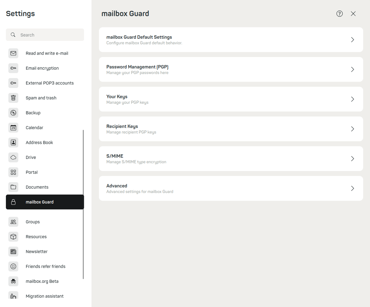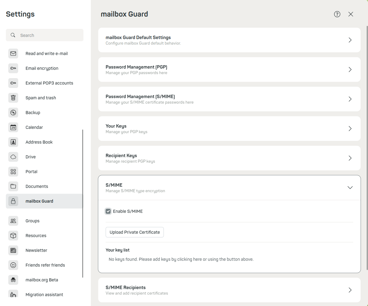 mailbox offers the option to import S/MIME certificates from selected organizations into the mailbox Guard. This allows you to encrypt and sign your emails with S/MIME.
