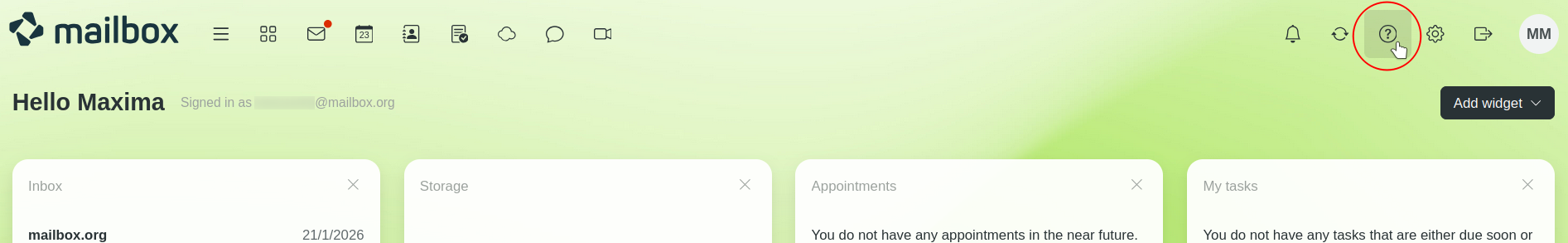 You can access direct help on the features of mailbox Suite by clicking the question mark icon in the top right-hand corner of mailbox Office or in the relevant dialogue window.