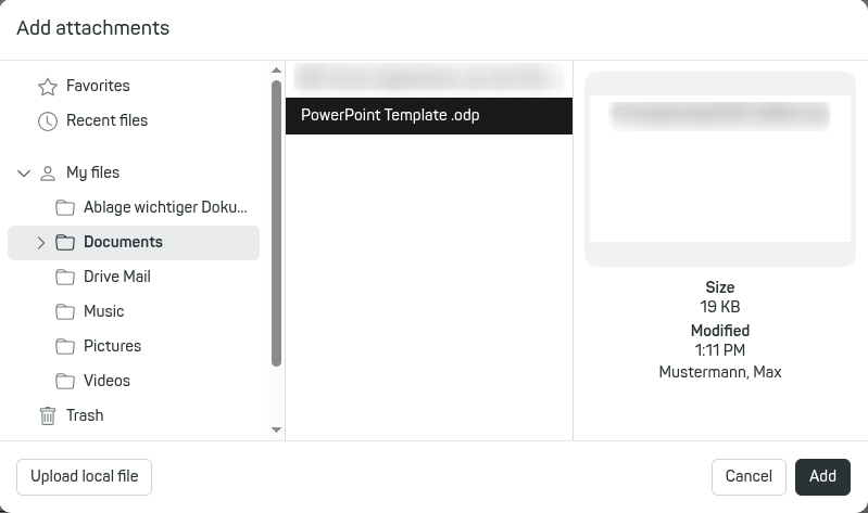 mailbox has now added the file as an attachment to the mail. Activate the checkbox Use Drive Mail to avoid sending the file directly and instead embed only the link to the file.