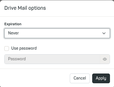 Figure 3: In the Drive Mail options you can set an expiration date and secure the link with a password.