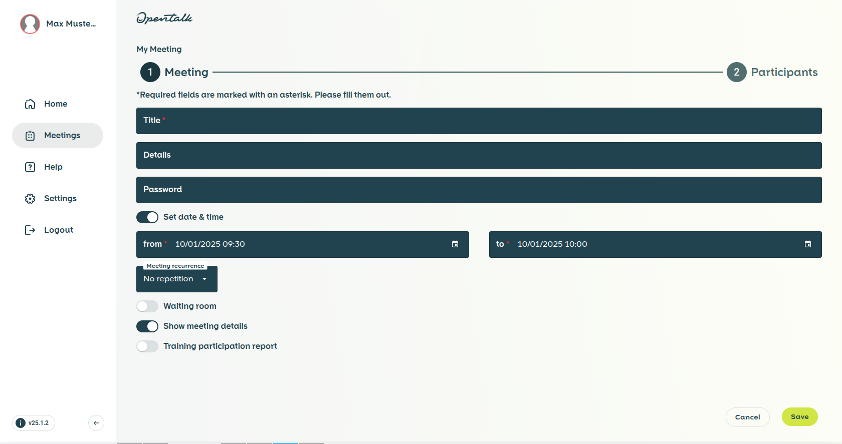 - Assign a Title for the meeting.