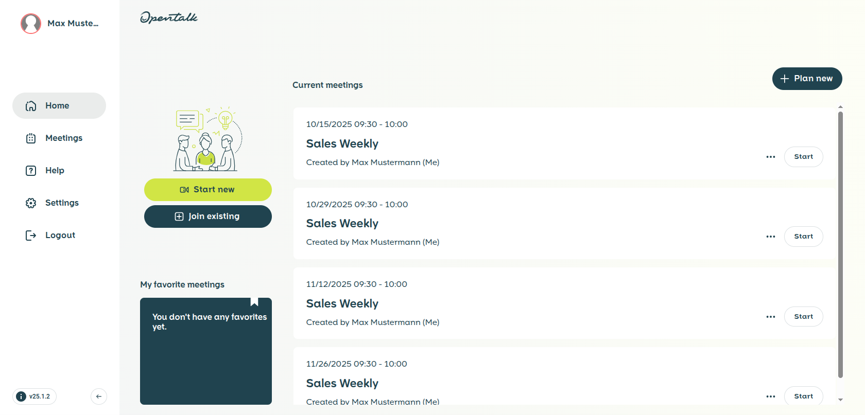 Figure 1: Here you can either start a meeting immediately or schedule a conference.