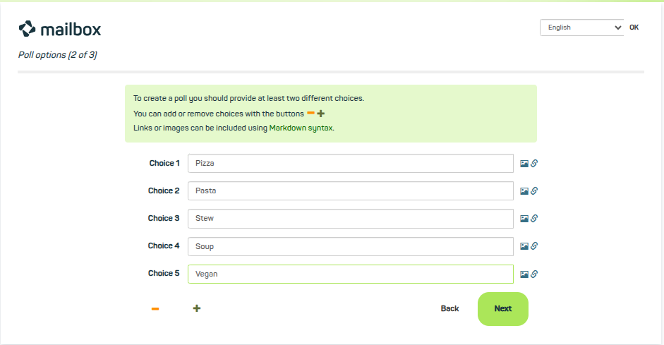 In the second step, add the titles of the options you want to make available for the vote, and again confirm your entries with a click on Proceed (Figure 3).