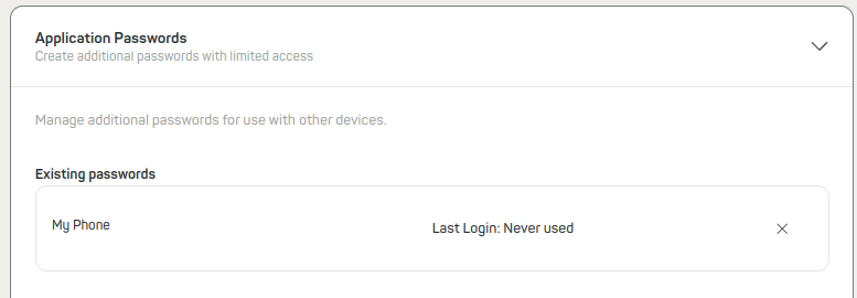 Application Passwords are an important security feature. You can set them individually for each app you use and revoke them at any time if misuse is suspected. By using Application Passwords, you prevent the account’s main password from being used and transmitted by the respective app.
